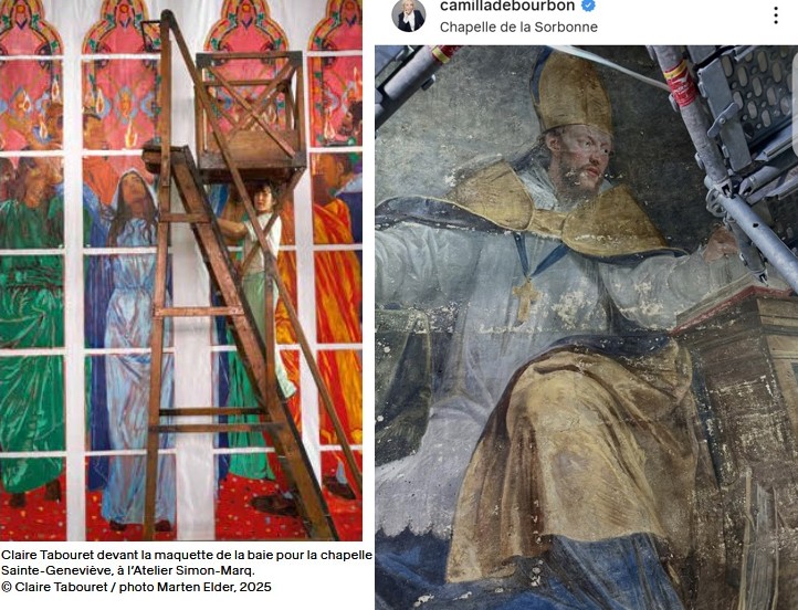 Pendant que la princesse Camilla de Bourbon des Deux-Siciles se rendait à la chapelle de la Sorbonne pour visiter le chantier de restauration notamment les oeuvres de Philippe de Champaigne (1602-1674) d’une grande beauté artistique et spirituelle, nous apprenions que l’annonce de l’autorisation de travaux pour la dépose des vitraux des 6 chapelles et la pose des nouveaux vitraux conçus par Claire Tabouret venait d’être affichée sur la cathédrale Notre-Dame de Paris.